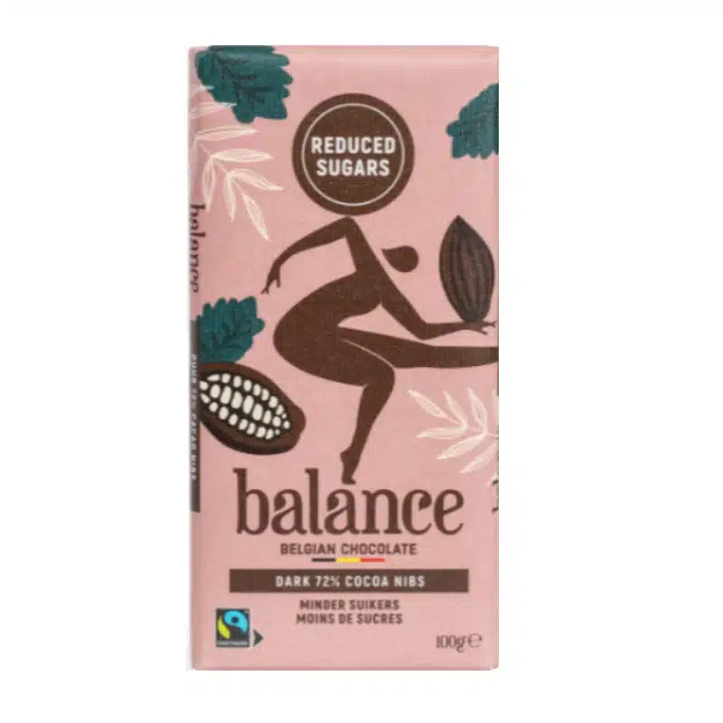 Die Balance Dark Chocolate ist eine kakaobetonte Zartbitterschokolade aus Belgien. Mit Kakao-Nibs für den besonderen Biss!